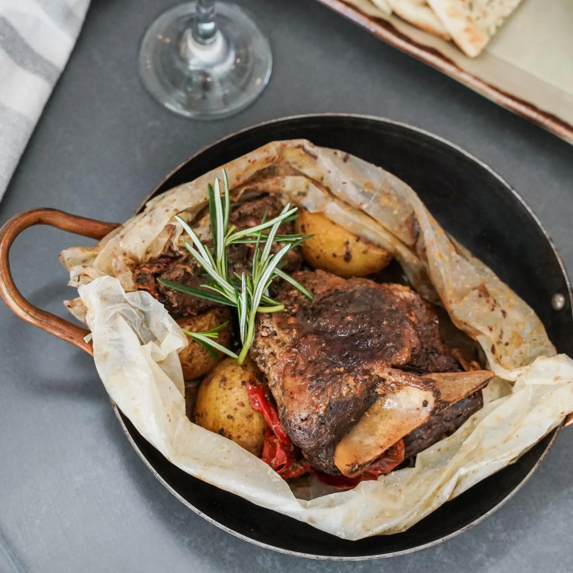 • 1.2-1.5 Kilo slow-cooked lamb shoulder with potatoes